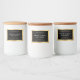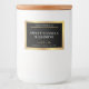Améliorez votre conception d'emballage de produit avec ces élégants étiquettes 3x2" rectangle noir et or - parfait pour les bocaux à bougies, les colliers de cire, les boîtes ou les poches. Avec bordure en or à effet métallique et arrière - plan noir avec type serif moderne et espace pour votre marque. Éditez dans l'éditeur de design et dévoilez quelques options de texte de script doré, dont 'bougie parfumée', 'bougie de cire de soja', 'bougie de luxe' et 'artisanal', parmi lesquelles vous pouvez choisir.