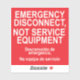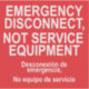 Un autocollant d'URGENCE DÉCONNECTEZ, PAS D'ÉQUIPEMENT DE SERVICE étiquette avec sous-titres espagnols pour les électriciens à utiliser lors de la mise à jour des services électriques. Desconexión de emergencia, pas d'équipement de servicio