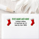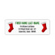 Ce design étiquette de adresse simple comporte deux bas de Noël rouges sur les côtés, avec un nom et une adresse personnalisables entre eux.