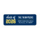 Conception personnalisée d'étiquette d'adresse avec lettrage inspiré des maillots de sport, parfaite pour votre étudiant vedette et athlète universitaire. Couleurs bleu marine, jaune et blanc. Les couleurs peuvent être personnalisées pour correspondre aux couleurs de l'école ou aux invitations de fête de fin d'études.