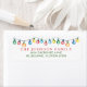 Ajoutez une joie festive à votre courrier de vacances avec cette étiquette d'adresse de retour de Noël ludique! Doté de lumières à cordes d'aquarelle aux couleurs primaires vives et d'une élégante typographie rouge et verte, il est la touche finale parfaite pour les cartes de voeux, les invitations de fête et les forfaits saisonniers. Personnalisez avec votre nom de famille et votre adresse pour un look joyeux et coordonné. Idéal pour les cartes de Noël, les mariages de décembre ou les emballages de petites entreprises sur le thème des vacances.