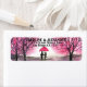 Belle et élégante aquarelle cerisier mariage de fleurs de cerisier Retourner les étiquettes d'adresse. Un couple romantique avec un parapluie rouge. Sakura, japonais rose, fleurs orientales. Vous pouvez personnaliser avec vos noms et adresse.