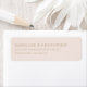 This return address label features a minimalist design with a clean, centered layout on a soft beige background. The elegant serif font in muted gold or taupe provides a sophisticated contrast, enhancing the modern and understated aesthetic. Perfect for formal communications, this label combines simplicity and clarity, making it ideal for those who appreciate refined and uncluttered designs.