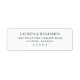 This return address label features a clean, minimalist design with centered text on a white background. The classic serif font adds an elegant touch, while the black and white color palette ensures readability and sophistication. Perfect for personalizing your mail, this label combines simplicity with style, making it ideal for formal correspondence or special occasions. Its straightforward layout emphasizes clarity, ensuring your information stands out effortlessly.