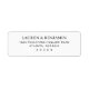 This return address label features a clean, minimalist design with centered text on a white background. The layout is simple and elegant, utilizing a classic serif font that adds a touch of formality. The black text provides strong contrast for easy readability, making it perfect for official documents or invitations. Its straightforward composition conveys professionalism and sophistication, ideal for those seeking a refined and polished look.