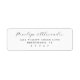 These return address labels feature a clean, modern design with a minimalistic layout that emphasizes typography. The elegant cursive script for names is paired with crisp sans-serif fonts for the address and postal code, creating a sophisticated look. The black text on a white background offers high contrast and readability, perfect for formal correspondence or invitations. The overall style exudes professionalism and simplicity, making these labels ideal for those who appreciate a polished and uncluttered aesthetic in their stationery.