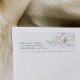 Belles étiquettes d'adresse de retour mariages d'inspiration sud avec une magnolia blanche illustrée, assise sur une typographie chic dans un aménagement moderne.