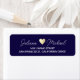 A personalized and elegant dark blue return address label with the image of a sepia-gold heart between the bride and groom names... to add a special touch to your invites.