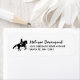 Étiquettes de adresse avec l'illustration en noir et blanc d'un cavalier en tenue formelle. Le cheval et le cavalier exécutent une belle pirouette. Un élégant mouvement de dressage classique.