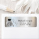 Élégante étiquette d'adresse de retour de remise des diplômes argent avec chapeau de remise des diplômes, boule à facettes et bouteille de vin.