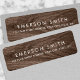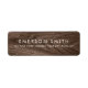 Élégantes étiquettes d'adresse de retour avec votre nom et adresse sur un arrière - plan de grains de bois brun. Visitez Facebook : @businessstationery pour plus de produits, nouvelles, ventes et plus encore.