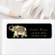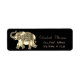 Étiquette Elégant Eléphant Floral Paisley Or, Noir