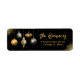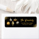 Add a touch of holiday glamour to your seasonal mail with this elegant Christmas address label. Featuring a rich black background adorned with sparkling gold and black ornaments and twinkling stars, this design blends festive charm with modern sophistication. The family name is styled in graceful script, while the address is presented in a clean, easy-to-read font - perfect for holiday cards, party invitations, or seasonal packages.
