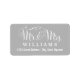 Ajoutez du style à vos enveloppes avec ces étiquettes d'adresse de retour avec M. et Mme dans un élégant script de calligraphie blanche avec du texte personnalisé que vous pouvez personnaliser avec le nom de famille et l'adresse de retour mariés du nouveau marié. La couleur arrière - plan gris clair peut être modifiée.