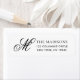 An elegant minimalist return address label featuring your monogram initial letter M in script typography. Personalize with your name and address in a simple black typography.