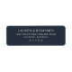 This return address label features a sophisticated and elegant design with a deep navy blue background that contrasts beautifully with crisp white text. The layout is minimalistic, utilizing ample negative space to highlight the clean, modern serif typography arranged in a hierarchical manner for clarity and impact. Perfectly centered, the design exudes a classic and understated style, ideal for formal occasions or professional use. Its refined aesthetic conveys sophistication and elegance, making it an excellent choice for those seeking a timeless and polished look.