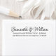 Elégant noir et blanc de script personnalisé calligraphie noms chic mariage étiquettes d'adresse de retour. Les lignes d'adresses ont suffisamment d'espace pour les noms et adresses longs