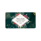 Les étiquettes de adresse de Noël présentent un design d'aquarelle élégant avec un arrière - plan vert foncé, des ampoules décoratives, des fleurs, des baies rouges et des éclaboussures d'or.