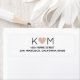 Un retour_address_étiquette personnalisé et élégant avec l'image d'un coeur de couleur rose entre deux lettres majuscules. Personnalisez-le avec les initiales et l'emplacement de votre femme et de votre mari... pour vos envois mariages.
