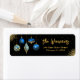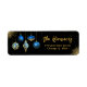 Add a touch of holiday glamour to your seasonal mail with this elegant Christmas address label. Featuring a rich black background adorned with sparkling royal blue and gold ornaments and twinkling stars, this design blends festive charm with modern sophistication. The family name is styled in graceful script, while the address is presented in a clean, easy-to-read font - perfect for holiday cards, party invitations, or seasonal packages.
