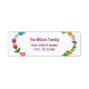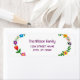 Étiquette élégante d'adresse de retour personnalisée pour une famille (peut être customisée pour une personne aussi), avec un motif floral autour des bords gauche et droit, et avec un élégant script manuscrit élégant pour le nom de famille ou le nom de la personne.