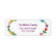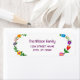 Étiquette élégante d'adresse de retour personnalisée pour une famille (peut être customisée pour une personne aussi), avec un motif floral autour des bords gauche et droit, et avec un élégant script manuscrit élégant pour le nom de famille ou le nom de la personne.