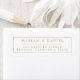 Élégant, simple tampon adresse de retour de mariage, dans un design moderne minimaliste, avec les noms des mariés dans une typographie élégante à empattement et une bordure élégante, associés à une adresse personnalisable dans une police tendance pour un style chic et sophistiqué en or et blanc classique.