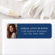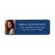 Elegant White Script Photo Blue Return Address Label that is fully customizable, with your photo, name, and return address. Perfect for adding to your graduation announcements, graduation party invitations, graduation thank you cards and more.
