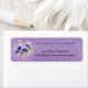 Conception d'étiquette d'adresse de retour de violettes violettes aquarelles élégantes nostalgiques sur fond de lavande.