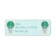 Ces adorables étiquettes d'adresse de retour comportent un bébé éléphant fantaisiste volant dans une montgolfière bleue turquoise. L'arrière - plan est un motif rayé bleu turquoise clair et blanc. Il y a des invitations et d'autres articles de coordination dans ma boutique, alors assurez-vous de prendre un pic.