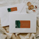 Le bord gauche de cette élégante étiquette d'adresse de retour d'invitation de mariage moderne comporte une bordure d'aquarelle vert émeraude, égayée d'un éclair d'or. Le texte personnalisable combine écriture manuscrite couleur or et polices de cuivre sur fond orange brûlé.