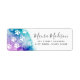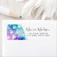 Jolies étiquettes d'adresse de retour avec des empreintes de pattes blancs sur un arrière - plan d'aquarelle violet et bleu aqua. Champs modèles pour nom et adresse.