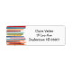Ces étiquettes d'adresses de retour ont un design moderne du milieu du siècle de lignes horizontales de couleur sur une ligne verticale noire avec des cercles.