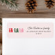 Ajoutez une touche festive à vos cartes de fin de année et cadeaux avec ces étiquettes Fa La La personnalisées d'adresse de retour de Noël. Conçus dans un arrière - plan rose pâle avec des lettres rouges et vertes ludiques, ces étiquettes apportent à la fois gaieté et style à vos envois saisonniers. Customisez avec votre nom de famille et votre adresse pour une touche de vacances personnelle. Parfait pour les cartes de Noël, les invitations à la fête et les forfaits cadeaux. Un moyen charmant et pratique de répandre la joie en cette période de vacances !