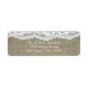 Étiquettes de faire-part de mariage rustique simple toile de jute et dentelle