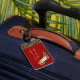 L'étiquette chic du bagage de la dame faite dans rouge foncé, avec des graphiques d'un motif brun et noir de fourrure de jaguar, et une paire de jaguar impriment les talons hauts stylets, sur l'avant. Personnalisez le texte bronzage pour adapter à vos besoins. De position une étiquette de bagage il est difficile de manquer que.