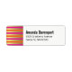 Un ensemble soigné d'étiquettes d'adresse de retour. avec un élégant motif composé de bandes horizontales métalliques roses, oranges et faux or.