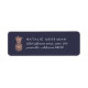 Les étiquettes d'adresse de retour chic en bleu nuit riche présentent une illustration d'ananas en feuille d'or faux rose ainsi que les détails de votre adresse de retour dans un bloc moderne et en italique.