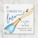 Ajoutez la touche de finition parfaite à vos faveurs de fiançailles avec cette étiquette "Cheers to Love". Doté d'une bouteille de champagne d'aquarelle et d'une mousseuse dorée, cet étiquette carré de faveur comprend des noms modifiables et la date de l'événement. Un détail élégant et festif pour attacher sur des sacs de fête, des bouteilles ou de petits cadeaux.