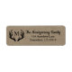 Étiquettes de adresse chic de ferme avec une silhouette de bois de cerf noir encerclant la lettre monogramme de votre famille en noir. L'arrière - plan est une fausse impression de burlap.