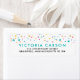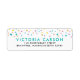 Cette étiquette Confetti Colorée Petite Adresse de Retour comporte des confettis aux couleurs vives de turquoise, violet, jaune, bleu et rose avec parties scintillant fausse or. Pour toute question sur les changements de conception personnalisés par le concepteur indépendant, veuillez envoyer un courriel à paula@labellarue.com AVANT de customiser ou de passer une commande.