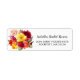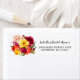 Étiquette d'adresse de retour parfaite pour une douche de nuptiale d'automne. Les fleurs rouges bordeaux, jaunes, oranges et roses rousses forment un joli bouquet floral d'automne. Le nom de la mariée et la douche de la mariée sont écrits dans un texte moderne et tendance. Coordonne avec la collection Always Fête des mariées.