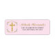 Célébrez la première sainte communion de votre fille avec vos amis et votre famille en leur envoyant une invitation avec cette élégante croix rose florale et or Première sainte communion Adresse de retour Label. Ce design présente une belle croix dorée avec un cadre doré contre un arrière - plan rose doux avec des fleurs d'aquarelle avec pêche et bleu dans chaque coin. Customisez le texte et la police à votre convenance. Personnalisez avec votre nom et votre adresse de retour. Autres polices et styles disponibles.