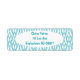 Ces étiquettes d'adresse de retour ont un design Art Déco de diamants reliés par des lignes courbes en turquoise.