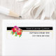 Bandes noires et blanches et aquarelle de fleurs tropicales étiquette mariage. Ce joli design présente des fleurs tropicales et vos noms sur une bande noire accentuée d'un or.