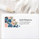 Étiquettes de adresse avec une bordure de jolis roses roses et bleus et feuilles verts peints.