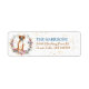 Le côté gauche de ces étiquettes d'adresse de retour présente l'image d'une couronne de fleurs de printemps aux couleurs rose, bleu, or, vert et crème. Au centre se trouve un portrait aquarelle d'un chien Boxer marron et blanc. De minuscules confettis d'or donnent un éclat subtil à l'arrière - plan. Votre texte personnalisé est en or bleu et brun à droite.