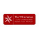 Ce étiquette de adresse présente un flocon de neige en blanc avec le nom du destinataire dans une police claire et simple et élégante avec les autres détails d'adresse dans un rose roux. Tous les détails peuvent être personnalisés directement sur la page du produit.