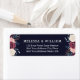 Étiquette d'adresse de retour de la mariée bleue et du Mariage de la salle de bain florale de Bourgogne moderne. Dispose d'un agencement floral dans les tons rose roux, bordeaux, bleu-gris et or rose en cuivre sur bleu marine foncé minuit. Personnalisez avec votre nom et votre adresse. Excellent pour l'envoi fiançailles et mariage. Visitez notre magasin Austen & Grace pour voir la suite mariage complète et plus encore, et contactez-nous si vous avez besoin de produits ou d'assistance correspondants contact@austenandgrace.com