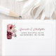 La bordure gauche de cette étiquette d'adresse de retour romantique moderne faire-part de mariage présente un bouquet floral aquarelle dans les tons bordeaux et rose poussiéreux. Le texte personnalisable combine un élégant script d'écriture bordeaux et une police sans serif gris fusain sur un arrière - plan blanc. Idéal pour un mariage d'automne ou d'hiver.